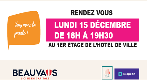 Le centre ville de Beauvais continue sa transformation. Une concertation est menée afin de la construire avec vous. Rendez vous le lundi 15 décembre de 18h à 19h30 au 1er étage de l'Hote de Ville.